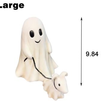 The statue features an adorable dog dressed as a ghost. designed to blend cuteness with a touch of spookiness. is a lovable addition to any Halloween themed decor. delighting both kids and adults.