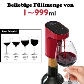 Refillable quantitative wine dispenser and electric wine aerator, adjustable 1-999ml wine dispensing settings; automatic stop of dispensing after the quantity dispensing wine is released, don’t worry about the cup overflowing.